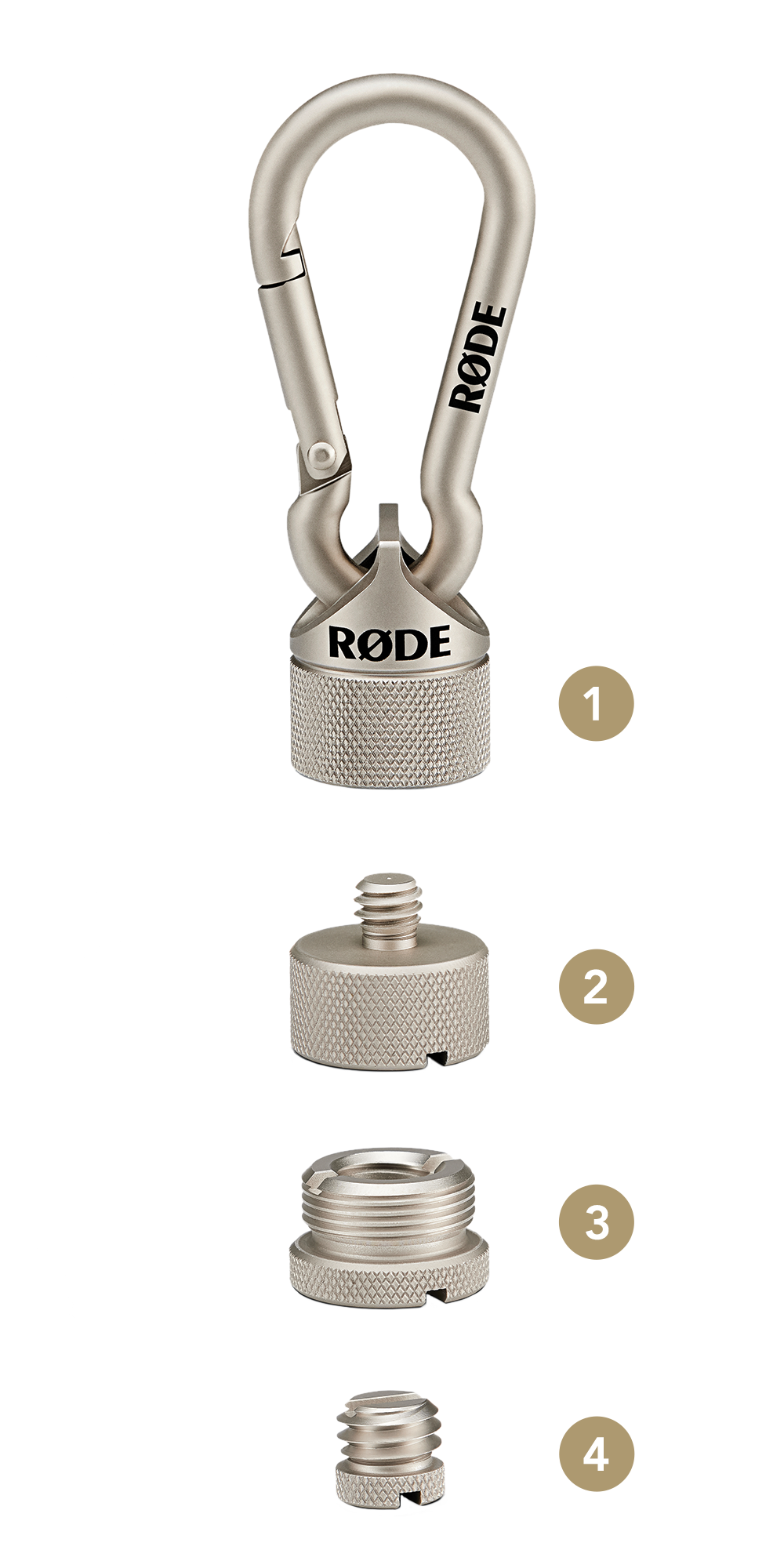 - Bộ chuyển đổi sợi chỉ đa năng để gắn micrô và các thiết bị khác vào bất kỳ chân đế micrô, boompole, giá ba chân hoặc cánh tay studio nào